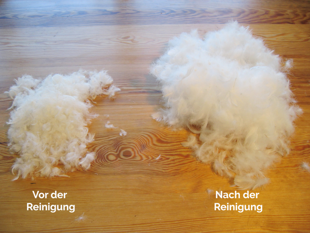 Da beim Reinigen die kaputten Daunen & Federn aussortiert werden, sollten diese üblicherweise ersetzt werden. Die Aufarbeitung ist deswegen immer teurer als eine Komplettwäsche. Die Reinigung Ihrer Bettwaren kann mit der „großen Inspektion“ beim Auto verglichen werden – die Komplettwäsche mit einer „kleinen Inspektion“.